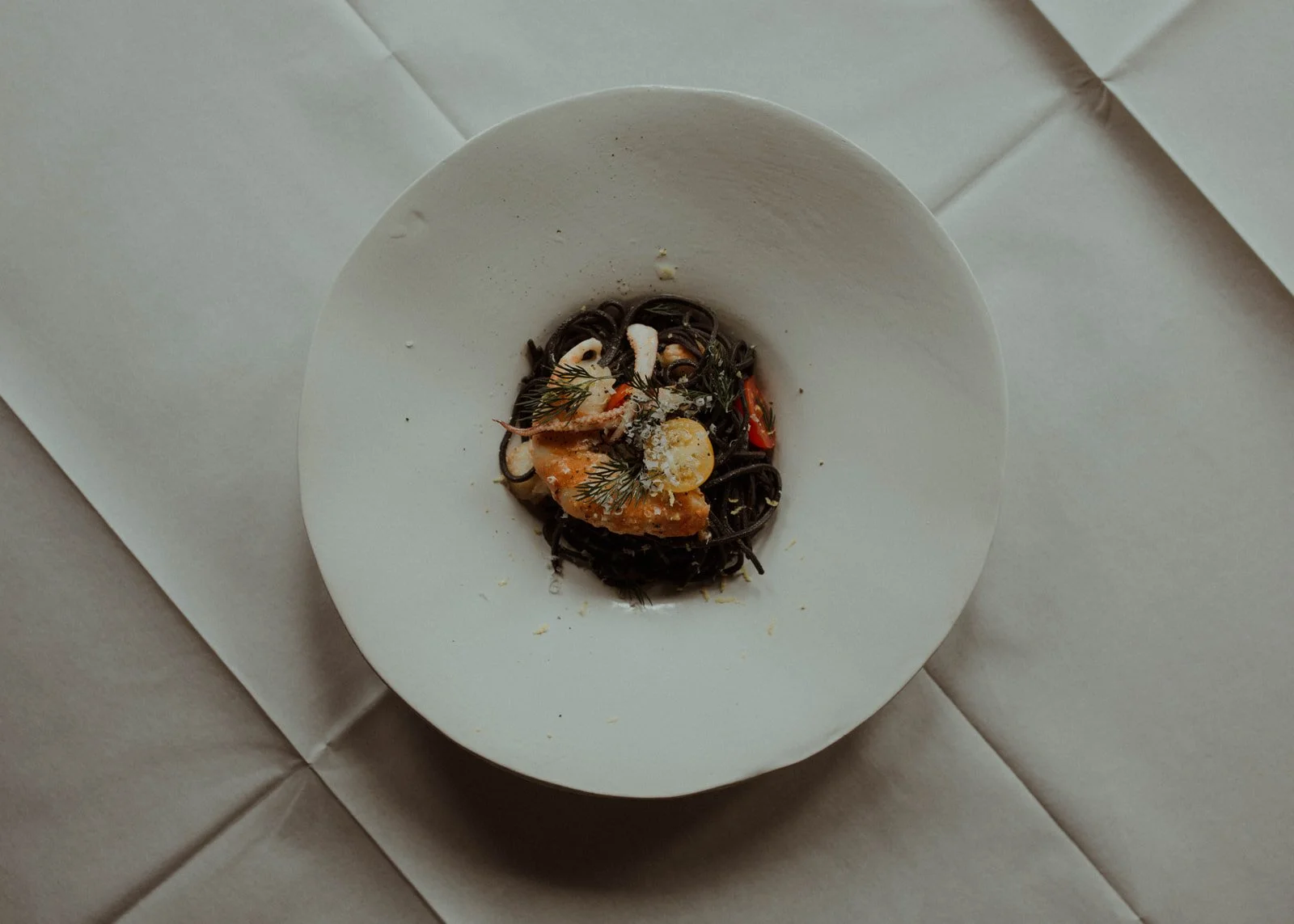 cacio pepe sauce, caper and raisin puree, semi dried tomato